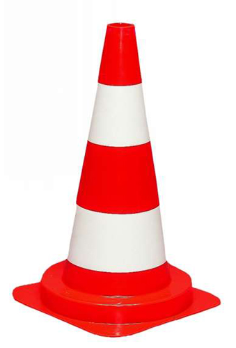 Große Verkehrsleitkegel zum Absperren von Arbeitsbereichen.